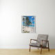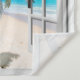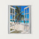 Vista para o mar tropical da praia, cena falsificada da janela, para uma parede sem janelas do escritório. Divertimento, tapeçaria cénico realística da ilusão óptica para um escritório ou parede do estudo.