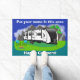 Esta porta pode ser personalizada para mostrar seu nome no topo. Quando usado fora do seu trailer de viagem, o pessoas saberá com quem está falando quando o vir. Feito de borracha antiderrapante, este é resistente a desbotamentos, mofo, rachaduras e pode ser limpado facilmente com uma mangueira. Esta versão tem um trailer semelhante a um trailer Grand Design Refletion 315rlt. Ele pode ser usado em ambientes fechados ou fora e faz um tapete de boas-vindas para seu acampamento, onde quer que você vá.