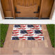 A porta é mostrada com um design de impressão de Bandeira do 4º de julho. Personalize este tapete ou comprar como está. Imagem do stock