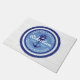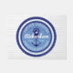 Comemore seu aniversário do marco miliário com este crachá azul náutico-temático do monograma. Silhueta da corda, do leme ou do rebento ou da roda, da âncora e do barco. Textura afligida suja e pia batismal do vintage. Personalize o texto da amostra com seus próprios. A parte do fundo diz o "Fiftieth aniversário" mas você pode mudar este ao nome de seu barco, citações ou frase favorita, porto/endereço do porto/doca ou o outro texto. Faz um presente maravilhoso para qualquer um que aprecia náutico, aventura do cruzeiro ou design marítimo-temático, navigação e aventuras do mar. Para o aniversário, a aposentadoria, a promoção, o housewarming, a celebração nova do barco, o dia dos pais e outras ocasiões especiais.
