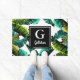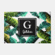 Obtenha um olhar do bungalow da ilha do divertimento a sua entrada! Este design moderno tropical das folhas da banana tem seus letra inicial e nome de família no roteiro. O chique da ilha é fácil com este grande doormat tropical.