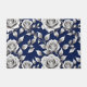A Pattern Of Silver And White Roses On A Royal Blue Background With A Subtle Metallic Sheen For A Sophisticated Effect