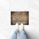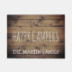 O divertimento, o presente exterior de madeira rústico da decoração para rvers, os casais aposentados, os caminhantes, os campistas, e os amantes de natureza são este o doormat de madeira personalizado do olhar das pranchas que lê campistas felizes com um modelo para adicionar o nome de família abaixo no branco, vista escrita à mão rotulam. Contra um fundo da madeira rústica, velha do celeiro embarca. Grande presente da aposentadoria, demasiado. Seja direito em casa na frente de um rv ou de uma cabana rústica de madeira acolhedor.