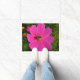 Este tapete de porta tem uma fotografia de uma flor com uma abelha.