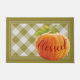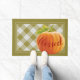 Porta-voz bonita ao ar livre com um design de abóbora cor de laranja no outono, sobre um fundo branco e antigo de xadrez de gingham verde, e uma simpática citação de texto "Bem-vindo ao outono". Sotaque de decoração de feriado de Ação de Graças por decorar a varanda da frente ou traseira, pátio ou veranda da sua casa de fazenda decorada, cabana de madeira, casa de lago rústico ou retiro aconchegante do rio.