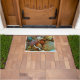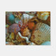 Este tapete de porta apresenta um design colorido, abstrato, conchas. Excelente para uma praia temida em casa ao ar livre.