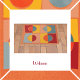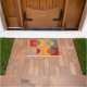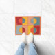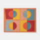 Um desenho abstrato colorido com círculos e quadrados para dar as boas-vindas aos seus convidados. Cores do sudoeste em cor de pêssego, azul e burgundy.