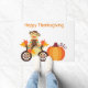 Bicicleta balnear montando macaco-meia com abóbora laranja grande e texto de Ação de Graças personalizável sobre fundo branco