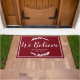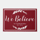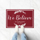Porta de Natal para uma fazenda de família. Silhuettes brancos cristalinos rodeiam as palavras "Acreditamos" em um roteiro elegante sobre um fundo vermelho festivo ousado! Esta porta também daria um presente de excelente para recém-casados ou novos donos de casa!