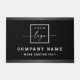 Porta comercial com o seu logotipo personalizado e duas linhas de texto em um fundo preto com bordas de gradiente de cinza escura, de cima e de baixo.