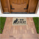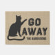 A Tendy Engraçada Sai da Porta de Gato com o Fundo de Burlap Modern Faux. Mala projetada personalizada com as palavras "Afaste-se" escrita em uma fonte legal de tipografia negra. Este tapete engraçado para amantes de gatos irá certamente encantar todos os hóspedes que o encontram.