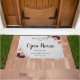 Não só os donos de casa amarão essa atenção aos detalhes, como também os visitantes. Bem-vindos aos convidados com esta porta 'Open House'. Como corretor de imóveis, vocês saberão que são as pequenas coisas que podem causar um grande impacto quando se trata de vender uma casa. Um bonito motif floral decora os cantos. Para personalizar, você adicionará seu nome e número de telefone. Se precisar de ajuda para personalizar o texto, entre em contato com o designer que pode ajudá-lo.