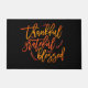 Palavras de gratidão para manter-se à mostra para inspirar e trazer um bom fator para acolher seus convidados. A tipografia colorida do outono está em um roteiro de na moda, graças grato abençoado com simples motivos de folha. O fundo preto pode ser alterado para outra cor, se assim o desejar.