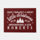 O olhar bonito da casa da quinta do inverno - serapilheira vermelha escura elegante do falso de Borgonha - o clássico "tem você mesmo um alegre texto de pouco Natal" com pinhos, azevinho, flocos de neve, e seu nome de família