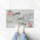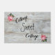 Esta Matriz de Portas de Algodão apresenta o texto Cottage Sweet Cottage sobre um fundo de madeira esbranquiçada com rosas bonito rosa. Perfeito para o teu Contentor ou Decoração Vintage.
