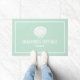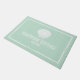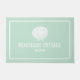 Bem-vindos aos visitantes com este tapete de porta alugado com design de férias de fachada moderno, com tipografia moderna, em branco, sobre um fundo verde da casa da moeda. Adicione o seu nome personalizado de aluguel de férias a este elegante tapete, perfeito para aluguel de uma casa de praia, aluguel de casa de lago ou airbnb.