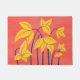 Um tapete floral tropical com uma ilustração do vetor geométrico de bonito plantas amarelas vibrantes florescentes com caules azuis escuros sobre fundo cor-de-rosa. Esta arte floral decorativa traz primavera e humor de verão.