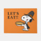 Celebre o Dia de Ação de Graças e o seu amor por amendoins com este design super fofo com Snoopy vestido como um carregando de peregrino uma torta de abóbora.