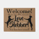 Este belo tapete de boas-vindas vai deixar todos os vossos visitantes saberem que estão a entrar na zona canina! A porta apresenta uma silhueta de cachorro com o texto: Bem-vindo! Todos os que entram serão banhados com amor e baboseira! (Você foi avisado!) Todo dono de cachorro sabe que há duas coisas que vêm com seu amigo peludo: Amor e Slobber! Então por que não comemorar com este tapete engraçado de boas-vindas? presente de excelente para o amante do cão na sua vida!