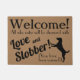 Este belo tapete de boas-vindas vai deixar todos os vossos visitantes saberem que estão a entrar na zona canina! A porta apresenta uma silhueta de cachorro com o texto: Bem-vindo! Todos os que entram serão banhados com amor e baboseira! (Você foi avisado!) Todo dono de cachorro sabe que há duas coisas que vêm com seu amigo peludo: Amor e Slobber! Então por que não comemorar com este tapete engraçado de boas-vindas? presente de excelente para o amante do cão na sua vida!