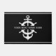 Porta de barco náutico em verde-turquesa real lendo seu nome de barco personalizado cercado pelo poço e âncora de um navio.