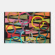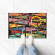 Esta porta tem uma design moderna do século médio de triângulos e anéis em cores retrorreflectoras em um campo de preto.
