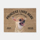 Irritado Chihuahua Personalizado Amante de Cachorro bem-vindo. Este tapete de boas-vindas pode ser personalizado com o nome do seu cão, o slogan também pode ser mudado ou você pode usar uma fotografia do seu próprio cão (certifique-se de que é transparente). O texto diz: Princesa vive aqui... Todos os tratamentos são bem-vindos Edite o design para alterar a fonte, as cores e a cor de fundo. Ao substituir a imagem do seu cão, use uma imagem transparente. Faz um presente maravilhoso para uma festa de inauguração, feriados, amantes de cachorros e a maioria das vezes.