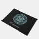 Essa mandala foi projetada para o signo zodíaco Aquário, que representa uma pedra turquesa no centro cercada por elementos que representam o signo, como o símbolo da placa, a constelação, o símbolo alquímico do ar, além de videiras e tecelões de árvores, embrulhando tudo em uma imagem sólida em tons de turquesa, prata e preto. Personalize o texto nesta porta com a sua saudação preferida ou remova-o completamente para fazer uma decoração exclusiva para a sua entrada.