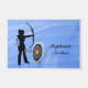 Porta especial para aquela arqueira especial. O fundo azul colorido tem a silhueta de uma arqueira fêmea ao lado de um grande alvo colorido. Personalize-o no espaço à direita com um nome. O texto é facilmente editado usando o modelo. Para outras alterações (tipo diferente de fonte, cor, tamanho ou posicionamento) selecione "personalizar" e selecione "Editar usando a Ferramenta de Design." Também disponível em tamanho menor. Veja as opções à direita.