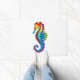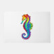 Articulação artificial, brilhante, arco-íris, cavalo de mar poligonal sobre fundo branco. Tatuagem brilhante.