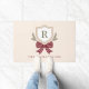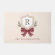 Bem-vindos convidados para sua casa esta temporada de festas com esta confortável e fofinha maçã de Natal. Ele apresenta uma crista festiva com os prigos iniciais, verdes e riscados da sua família, e um arco de férias listrado. Personalize o modelo com seu monograma e nome. Esta porta personalizada é a maneira perfeita de adicionar calor à sua entrada. © Kimbellish, LLC