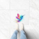 Bela, iridescente, exótica beija-flor voadora sobre fundo branco, pintada com pintura multicolorido, aquarela. Cotovelo-cotovelo.