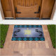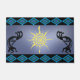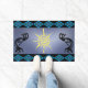 Arizona sudoeste Sun Kokopelli Rug Doormat Combinação de cores azuis vívidas que você pode personalizar as cores de fundo para corresponder ao seu decor. Culturas indígenas nativas americanas de Kokopelli. Atribuído a aliens antigos ou arte tribal e inspirado em desenhos de cavernas e rochas. Personalize as cores e estilos do tapete de porta nativo americano do Estilo Sudoeste. ideia de presente de excelente.