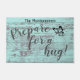 Bem-vindos aos seus convidados com este divertido roteiro tipografia, o tapete de porta rústica, design, personalizado com um nome e "Prepare-se para um abraço". Preencha o campo de texto com um nome de família, remova o nome ou clique em personalizar para selecionar um estilo de fonte, tamanho e cor preferidos.