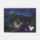 A arte Starry Night de Traci Van Wagoner impressão, posters, acessórios e presentes mostra nossa pintura original de duas crianças e seu grande e negro cão acampando sob as estrelas lendo um livro fantástico ao redor de um fogo no acampamento sobre cavaleiros e dragões. A magia da história está subindo no céu estrelado para mostrar um cavaleiro e um dragão numa dança eterna noturna de estrelas. Aproveite um acampamento noturno de verão nas montanhas.