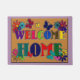 Arte Home bem-vinda com flores & borboletas. Então dado à mão criado falso fundo de madeira e falso borda metálica, usando Adobe Photoshop.