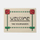 Este é um design original no estilo de Artes e Artesanatos antigos que inclui dois rosas do estilo Charles Rennie Mackintosh. O texto "Bem-vindo" está na fonte original "Artes e Artesanatos GS". Este tipo de letra inspira-se vagamente na inscrição decorativa dos artistas do Movimento de Artes e Artesanatos Escocês Jessie Marion King (1876 - 1949), e Charles Rennie Mackintosh (1868 - 1928) da Escola de Glasgow. O estilo de escola escocês, ou Glasgow, foi um movimento contrário ao tradicional Art Nouveau. Você pode personalizar facilmente o texto inferior com seu próprio sobrenome ou qualquer texto que quiser neste modelo de design. Todos os gráficos são elementos separados que podem ser reorganizados ou excluídos. A cor de fundo bege também pode ser facilmente personalizada.