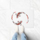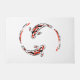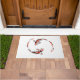 Um tapete de porta com um par de peixes koi negros e vermelhos nadando e circulando um ao outro. Design minimalista simples.