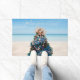 Celebrar as férias com esta maravilhosa porta de Natal com tema tropical. A design é uma foto de uma espantosa árvore de Natal, apresentada no Museu de Arte de Orlando durante a exibição anual do Festival de Árvores. A bela árvore de férias é enfeitada com decorações inspiradas na costa, incluindo estrelas-do-mar, sereias miniatura, bolas de ornamentação coloridas em azul, verde e marfim, e um peixe grande com ramos de coral para o topo da árvore. O fundo é uma paisagem de praia calma. O texto diz "Natal na Flórida Feliz". Por favor, pesquise nossa coleção completa de cartões de natal e presentes costeiros, tropicais e temáticos da Flórida. Solicitações especiais de design aceites. (Fotografia e design de Glenda Motsavage.)