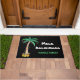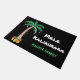 Feriado Festivo Mele Kalikimaka... Este tapete de porta divertida é decorado com uma palmeira de aquarela, luzes de Natal e abacaxi. O texto é personalizável. Personalize este tapete com o seu nome. Original Watercolor © Michele Davies.