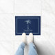 Adicione seu próprio toque especial a este design simples e elegante que apresenta seu nome ou frase da família e data estabelecida em texto verde claro e palmeira moldado em borda clara e clara sobre um fundo azul marinho.