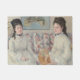 Este design apresenta uma pintura do Impressionista Francês Berthe Morisot (1841-1895). Ele retrata duas irmãs elegantes sentadas juntas num sofá. Ambas as irmãs se parecem: elas têm penteados semelhantes e ambas vestem vestidos brancos com pontos azuis. Eles estão vestindo colares pretos no estilo do chocolate. As senhoras estão em uma sala de estar elegante. A irmã à direita está segurando um fã em sua mão. A obra de arte original foi pintada por Berthe Morisot em 1869.