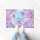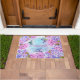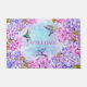 Este belo tapete de porta é uma maneira tão sedutora de receber seus convidados. Há lindas flores cor-de-rosa e roxas de hydrangea e três delicadas e coloridas beija-flores voando sobre e bebendo o néctar das flores. Diz bem-vindos no meio contra um fundo de aquarela azul e rosa. Também no nosso compro há bandeiras de casa e jardim!