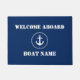 Corda bem-vinda náutica da âncora seus azuis marinhos e branco da esteira de porta do nome do barco