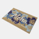 Azuis marinhos e colorway azul. A mensagem de Aloha dá boas-vindas a seus visitantes a seu próprio paraíso tropical. Estas mão desproporcionado flores rendidas do hibiscus são reminiscentes das flores usadas em camisas do vintage aloha nos anos quarenta e no anos 50. Monta sobre um pano de grama do falso e vem em diversas maneiras da cor. Você pode personalizar a mensagem.