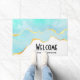 Bem-vinda à porta com um design de verão sereno. Turquesa / aqua imagem aqua verde aquosa com uma borda de ouro ondulada. Elegante e adorável.