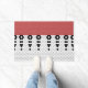 Esta porta de azulejo preto e vermelho tem um interessante design de borda que adiciona um pequeno pop a qualquer entrada.