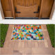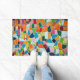 Esse design apresenta uma imagem de azulejos cerâmicos em forma de mosaico em várias cores brilhantes.