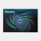 Uma imagem fractal azul parecida com um grupo giratório de baleias sob gelo polar; talvez beluga ou baleias-da-índia que frequentam os polos. Texto lendo "Alaska" aparece em azul brilhante.