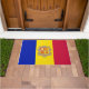 Esta design é constituída pela bandeira nacional de Andorra (oficialmente o Principado de Andorra), um microestado soberano e sem litoral na Península Ibérica. Andorra situa-se nos Pirenéus orientais, que são limítrofes pela França ao norte e Espanha ao sul. Pensa-se que foi criado por Charlemagne, Andorra foi governada pela contagem de Urgel até 988, data em que foi transferida para a diocese católica romana de Urgel. É conhecida como um principado, pois é uma diarquia liderada por dois príncipes: o Bispo de Urgel na Catalunha, na Espanha, e o Presidente da República Francesa. Andorra é uma das nações mais pequenas da Europa. As pessoas de Andorra são um grupo étnico românico de ascendência originalmente catalã; a língua oficial de Andorra é catalã, mas o espanhol, o português e o francês também são comumente falados. A capital e maior cidade de Andorra é Andorra la Vella.
